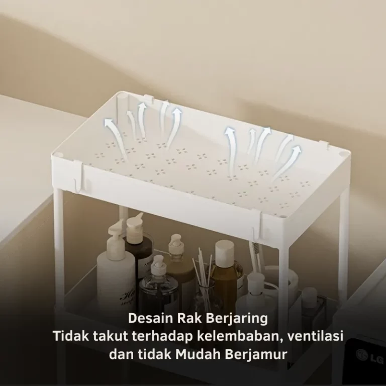 KANAWA Rak Serbaguna terbuat dari plastik tebal berkualitas tinggi dengan desain pola berongga yang menjaga rak tetap kering, bebas lembap, dan anti bakteri.